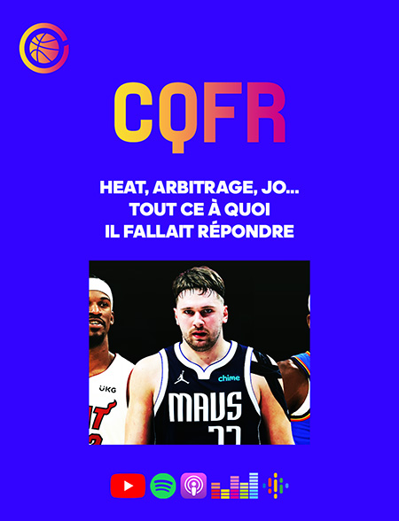 C'est samedi et vous connaissez désormais le rendez-vous avec un nouvel épisode du CQFR bonus, "Ce à Quoi il Fallait Répondre", où la rédaction répond à vos questions. Antoine Pimmel et Shaï Mamou font le maximum pour répondre aux questions que vous nous avez adressées. On parle du Heat de Jimmy Butler, de l'arbitrage, des Jeux Olympiques, des franchises où l'on aimerait jouer si on avait le talent pour le faire, etc...