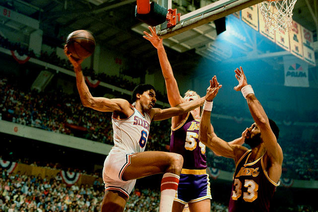 Il reste un peu plus de 7 minutes dans le quatrième quart-temps quand le Doc a cette somptueuse inspiration. Les Sixers mènent 89-84. L'ailier avance avec la balle. Mark Landsberger bloque le chemin qui pourrait le mener vers le panier. Mais il décide de sauter. À sa gauche, l'ancien ailier fort des Lakers, numéro 54 frappé dans le dos. En face de lui, les 2m18 de Kareem Abdul-Jabbar. Le public a peur. La casse semble irrémédiable. En l'air, le joueur des Sixers veut tout de même tenter son coup. Avec succès. Derrière le panier, il utilise toute la rotation que lui permet son bras afin de rabattre le ballon sur la planche. Bingo : il offre deux points supplémentaires à son équipe. Et au monde entier des images que personne n'oubliera jamais.« Je ne pouvais pas en croire mes yeux. C'est encore le plus grand move que j'ai jamais vu dans un match de basket, le meilleur de tous les temps », déclare par exemple Magic Johnson à Philly.com, lui qui était alors rookie dans les rangs des Lakers.https://www.youtube.com/watch?v=lY6J1gL2mGg