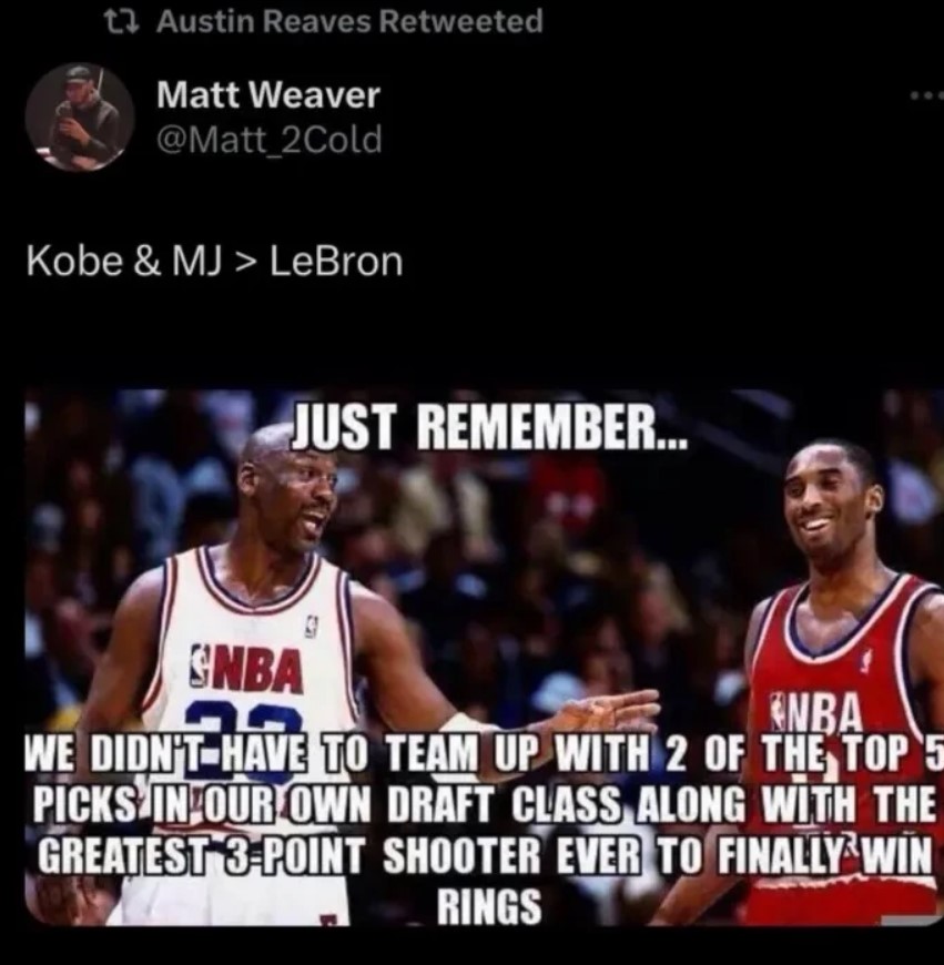 En mai 2014, avant le départ du "King" pour un retour à Cleveland : "Kobe & MJ > LeBron. Rappelez-vous simplement qu'à l'époque on n'avait pas besoin de s'associer avec deux des cinq meilleurs joueurs de notre classe de Draft et avec le meilleur shooteur de l'histoire pour enfin gagner des titres", en référence aux "Heatles" avec Dwyane Wade, Chris Bosh et Ray Allen.