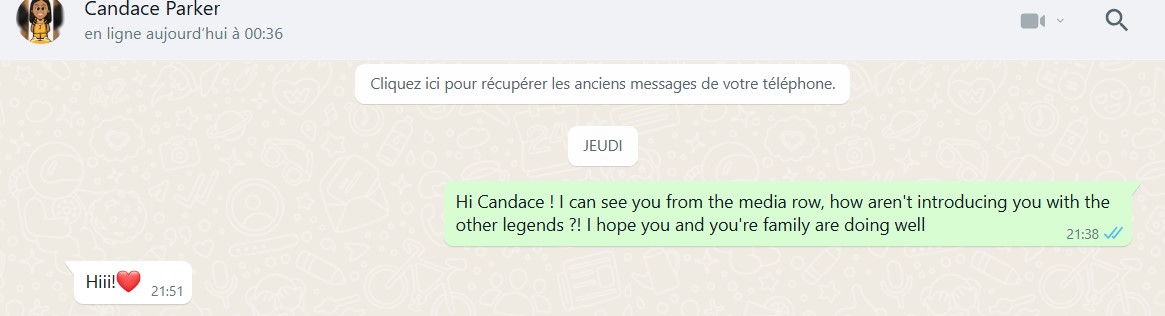 - Il y avait Candace Parker près du terrain lors du game 1, mais elle n’a pas été mentionnée parmi les légendes présentes à ce match. On a dû retenir Shaï, qui était en train de partir se battre avec les organisateurs après ce blasphème. Heureusement, ils se sont textés après et CP3 - la vraie - a réussi à le calmer avec un "Hi" et un emoji en coeur.