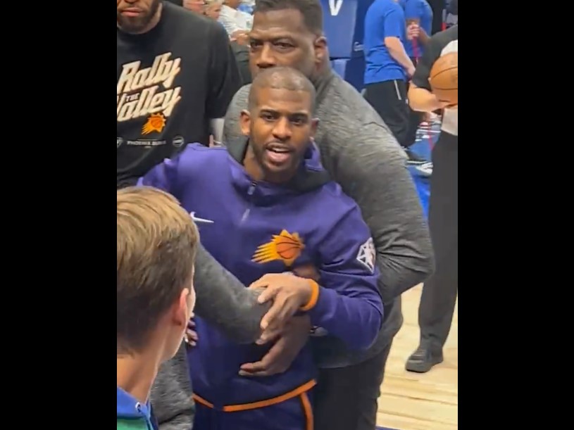 On imagine la colère du capitaine des Suns, particulièrement le jour de la fête des mères aux Etats-Unis. Les incidents de ce genre se multiplient ces dernières années. Il y a toujours eu des fans moqueurs et insultants, mais une barrière a été franchie par un certain nombre d'individus qui se croient absolument tout permis parce qu'ils ont payé cher leur place et se trouvent près du terrain. A un moment, la NBA va devoir trouver le moyen de limiter ces interactions embarrassantes et qui mettent en péril la sécurité des joueurs et de leur famille. L'ancien patron du syndicat des joueurs a immédiatement tweeté après le match :It appears two Mavs fans were ejected late in Game 4. Reports said the two pushed Chris Paul's mom and wife.pic.twitter.com/KuQJI64Nrf