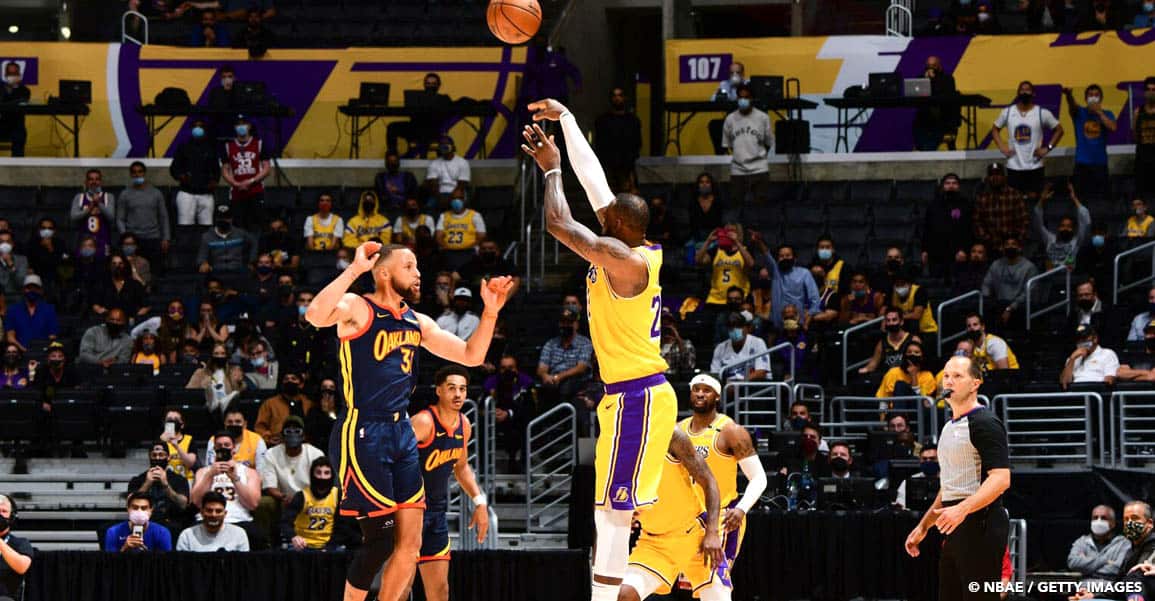 - LeBron James voulait faire virer le type qui a inventé le format du play-in. Vu la tension et le suspense de ce Lakers-Warriors finalement remporté par L.A. (qui affrontera Phoenix au 1er tour des playoffs NBA), le mec risque plutôt d'avoir une promotion... Les Lakers se sont sortis un peu miraculeusement du piège tendu par Stephen Curry (37 pts) et sa bande cette nuit. Menés de 13 points à la pause, maladroits pendant une bonne partie du match, les champions en titre ont fait le dos rond jusqu'à un petit miracle. Alors que les deux équipes étaient à égalité et qu'il souffrait d'une draymondite oculaire aigüe (Draymond Green lui a mis la main dans la tronche sur une faute) et venait de se prendre un litre de collyre dans l'oeil, le King a balancé une prière à 3 points en toute fin de possession à 58 secondes de la fin."Je voyais trois paniers au moment de shooter", a assuré LeBron, que l'on soupçonne d'en avoir rajouté un petit peu pour la théâtralité du souvenir.