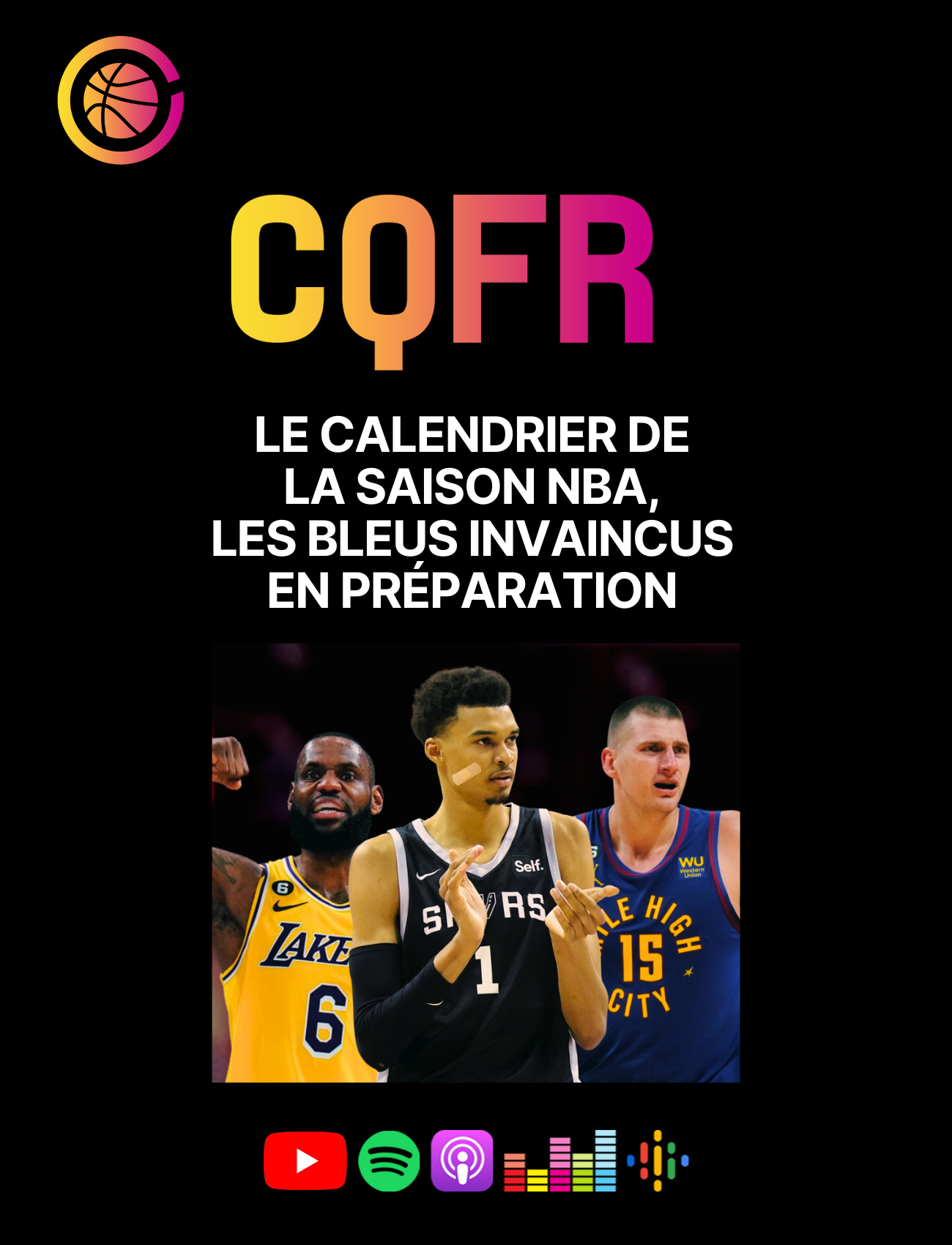 Au menu du CQFR de ce vendredi, Antoine Pimmel et Benjamin Moubeche se penchent sur le calendrier de la NBA et l'impact de l'arrivée de Victor Wembanyama sur l'exposition médiatique des Spurs, puis la préparation des Bleus.
