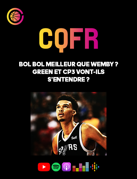 Théophile Haumesser et Shaï Mamou décryptent l'actualité basket comme chaque matin dans le CQFR vidéo du jour. L'épisode de ce vendredi se concentre sur la comparaison entre Bol Bol et Victor Wembanyama, ainsi que sur l'entente entre Draymond Green et Chris Paul, nouveaux coéquipiers aux Warriors.