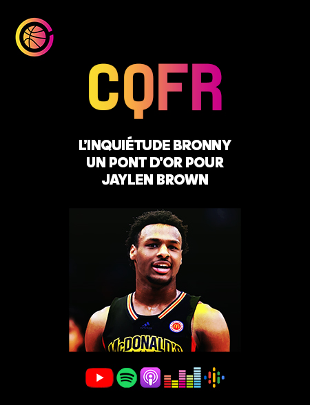 Comme chaque matin du lundi au vendredi, voici votre dose de CQFR avec aujourd'hui Théophile Haumesser et Shaï Mamou au rapport. Au menu ce mercredi matin, des nouvelles de Bronny James après l'effrayante nouvelle de la veille et un focus sur Jaylen Brown, désormais le joueur avec le plus gros contrat de l'histoire de la NBA.
