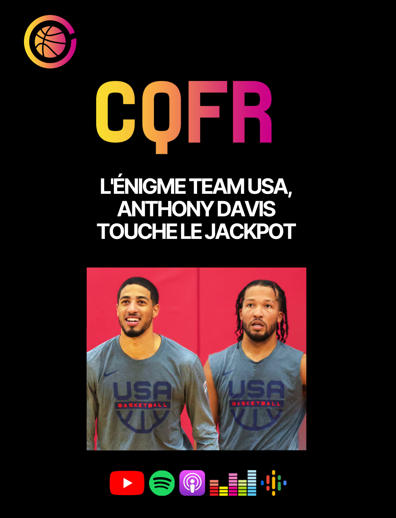 Au menu du CQFR de ce lundi matin, Shaï Mamou et Benjamin Moubèche discutent de Team USA et des incertitudes qui entourent le groupe de Steve Kerr avant le Mondial, mais aussi de la prolongation d'Anthony Davis avec les Los Angeles Lakers et de ce qu'elle implique.