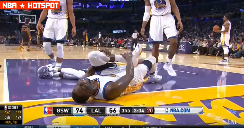 http://www.dailymotion.com/video/x53lv30 L'intérieur All-Star a glissé, abîmant sa cheville au passage, et il est retombé sur Ian Clark. Les deux hommes sont restés longuement à terre. Aucun des deux n'est retourné sur le parquet par la suite. Une fois debout, ils se sont immédiatement dirigé - difficilement - vers le vestiaire."Draymond m'a dit qu'il s'était fait mal à la cheville mais que ce n'était rien de grave", confesse Steve Kerr, le coach des Warriors.L'IRM n'a révélé aucune fracture. Draymond Green espère jouer le prochain match contre les Minnesota Timberwolves, ce soir.