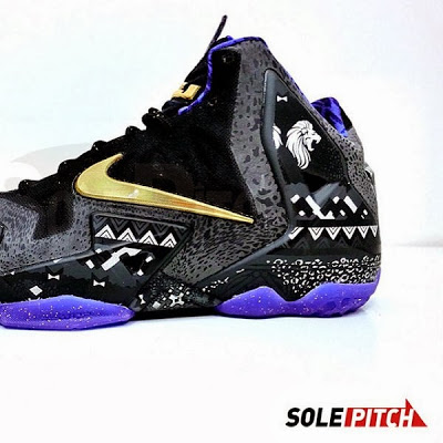 Février approche à grands pas et avec le Black History Month. Pour l'occasion, Nike présentera trois éditions spéciales des ses modèles phares. Les premières images de la LeBron XI ont été dévoilées sur la toile. Un colori sombre (noir et violet) et des graphismes africains et têtes de lions habillent la chaussure.