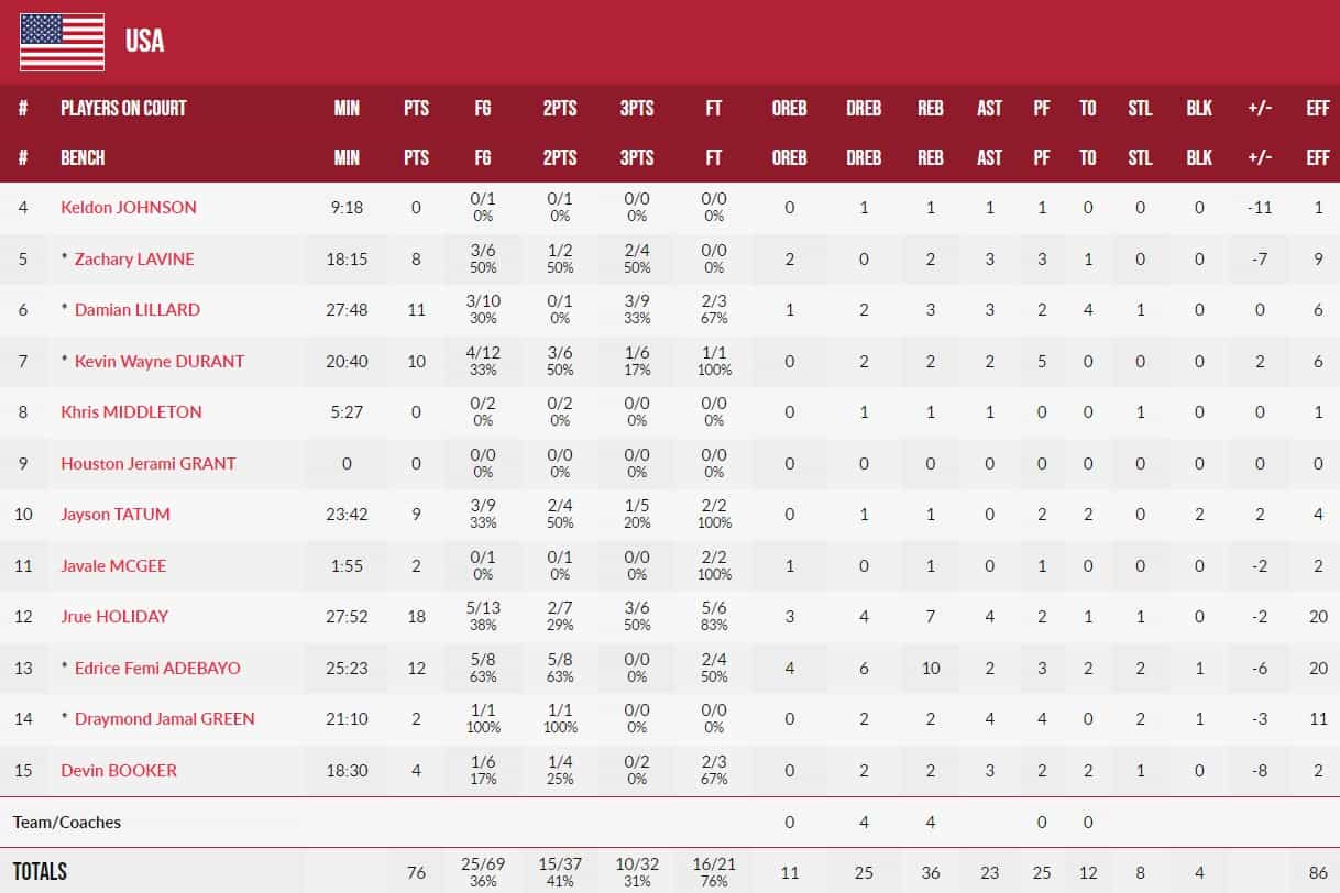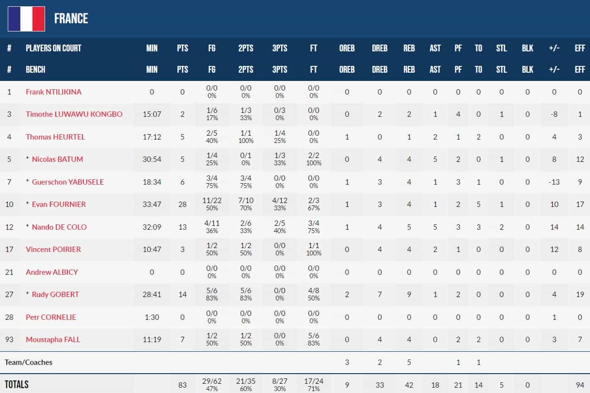 Lorsqu'il a fallu prendre des tirs compliqués, Fournier, Heurtel ou Batum sont montés au créneau. Lorsqu'il a fallu s'arracher pour éviter des sorties de balle ou arracher un rebond, Gobert, Poirier ou Yabusele ont répondu présents. Une action symbolise à merveille l'état d'esprit et l'exécution tricolores dans ce match. Celle qui a permis à l'équipe de France de virer en tête pour de bon à 57 secondes de la fin : un sauvetage de De Colo pour débuter l'action, un plongeon kamikaze de Yabusele pour éviter la sortie et servir Fournier, puis le shoot ice-cold du meilleur marqueur des Bleus. A consommer sans modération.Du côté de Team USA, c'est ce que l'on appelle communément la soupe à la grimace. Un homme a incarné la déception, même si c'est évidemment en équipe que les Américains sont passés à côté de leur 2e mi-temps : Kevin Durant. La star des Nets a marqué 10 points à 4/12, mais n'a jamais réussi à mettre tout le monde en rythme. Idem pour Damian Lillard, auteur de quelques shoots saignants en début de partie, avant de disparaître et de ne pointer le bout de son nez que sur quelques séquences en solo.Qu'est-ce que vous évoque le sauvetage de @NandoDeColo ? 🥰 #TeamFranceBasket #Tokyo2020 #Basketball pic.twitter.com/HdbVnNwLAZ