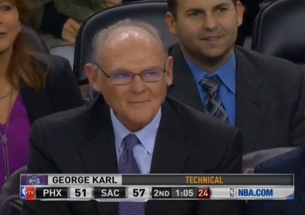 Après avoir écopé d'une technique, George Karl a reçu le soutien de DeMarcus Cousins, visiblement amusé que son coach soit à son tour sanctionné de la sorte par le corps arbitral.