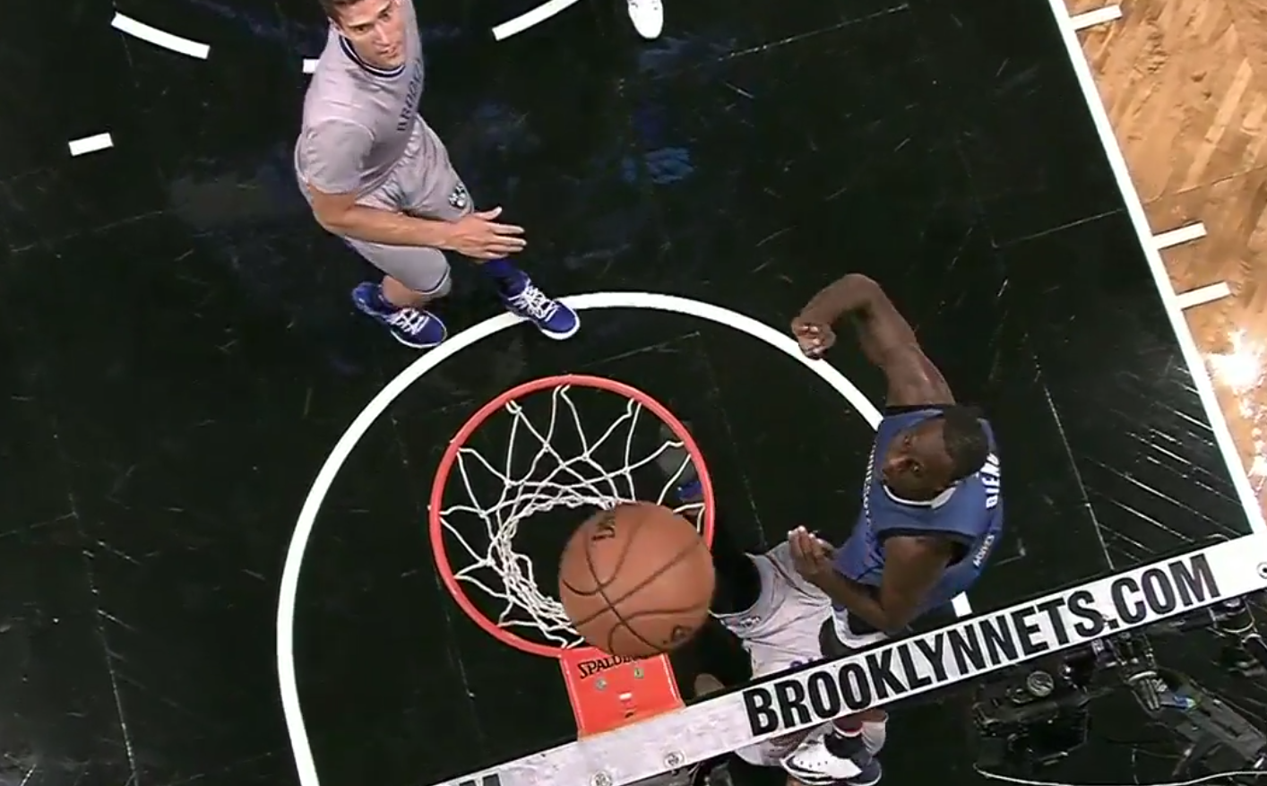 Quand Gorgui Dieng veut marcher sur un adversaire, il le fait littéralement. Isaiah Whitehead des Nets l'a constaté cette nuit.
