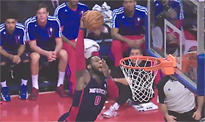 - C'est la première fois depuis Dennis Rodman en 1991 qu'un joueur de Detroit score autant de points en prenant autant de rebonds. The Worm avait réussi un match à 34 pts et 23 prises.