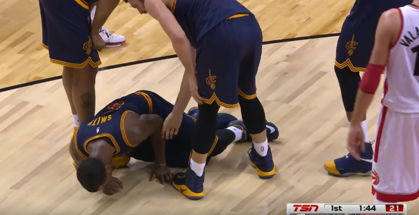 J.R. Smith a dû quitter ses coéquipiers prématurément après avoir ressenti des douleurs au genou lors de la rencontre entre Cleveland et Toronto.