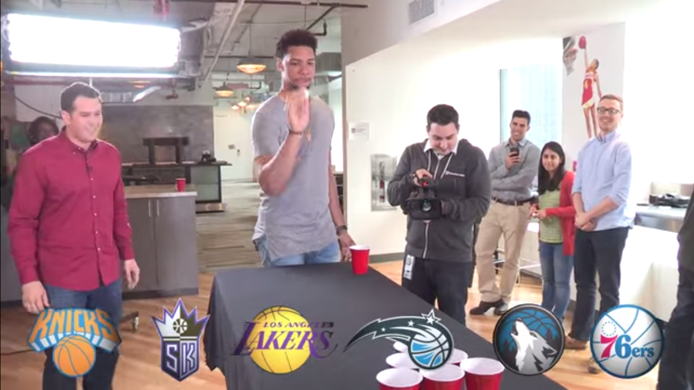 Jahlil Okafor n'est pas mauvais pour lancer des balle de ping-pong dans des verres situés à l'autre bout d'une table. Il joue même à ça pour savoir dans quelle équipes il sera drafté.