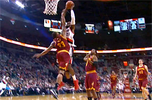 JJ Hickson n'a pas fait de cadeau à Alonzo Gee qui, pour une fois, était du mauvais côté du poster.