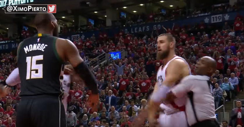 Jonas Valanciunas a renvoyé Greg Monroe de façon autoritaire avant d'obtenir la faute en contre-attaque. Un enchainement qui n'a pas plu à l'amour propre du joueur des Bucks qui a voulu en venir aux mains.