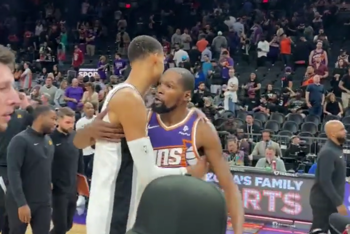 On a pu voir Kevin Durant et Victor Wembanyama échanger quelques mots et sourire à la fin du match. Le Français continue de croiser des joueurs qu'il a idolâtrait il n'y a pas si longtemps et de ne manifester aucune peur au moment de les affronter.