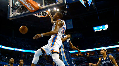 On se doute que Perry Jones doit claquer des gros dunks à l'entraînement du Thunder. Tout le monde connait les qualités athlétiques de Gerald Green et DeAndre Jordan. Quant à LeBron James... Kevin Durant veut voir LeBron James au concours de dunks