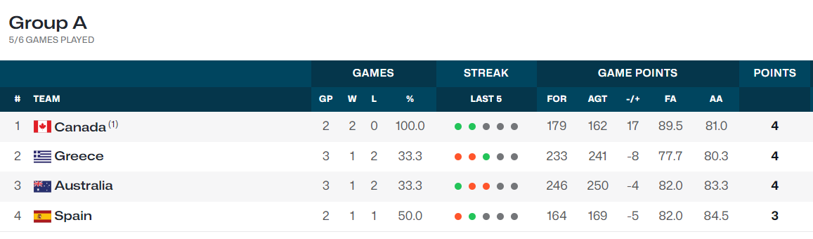 Pour savoir qui terminera troisième de ce groupe et si ce troisième en question aura un meilleur point-average qu'au moins une des deux autres équipes qui auront terminé à cette place, il faut attendre le résultat du match Canada-Espagne et les rencontres de la Poule C (celle des Etats-Unis) samedi pour savoir qui rejoindra les quarts et qui devra déjà faire ses valises.