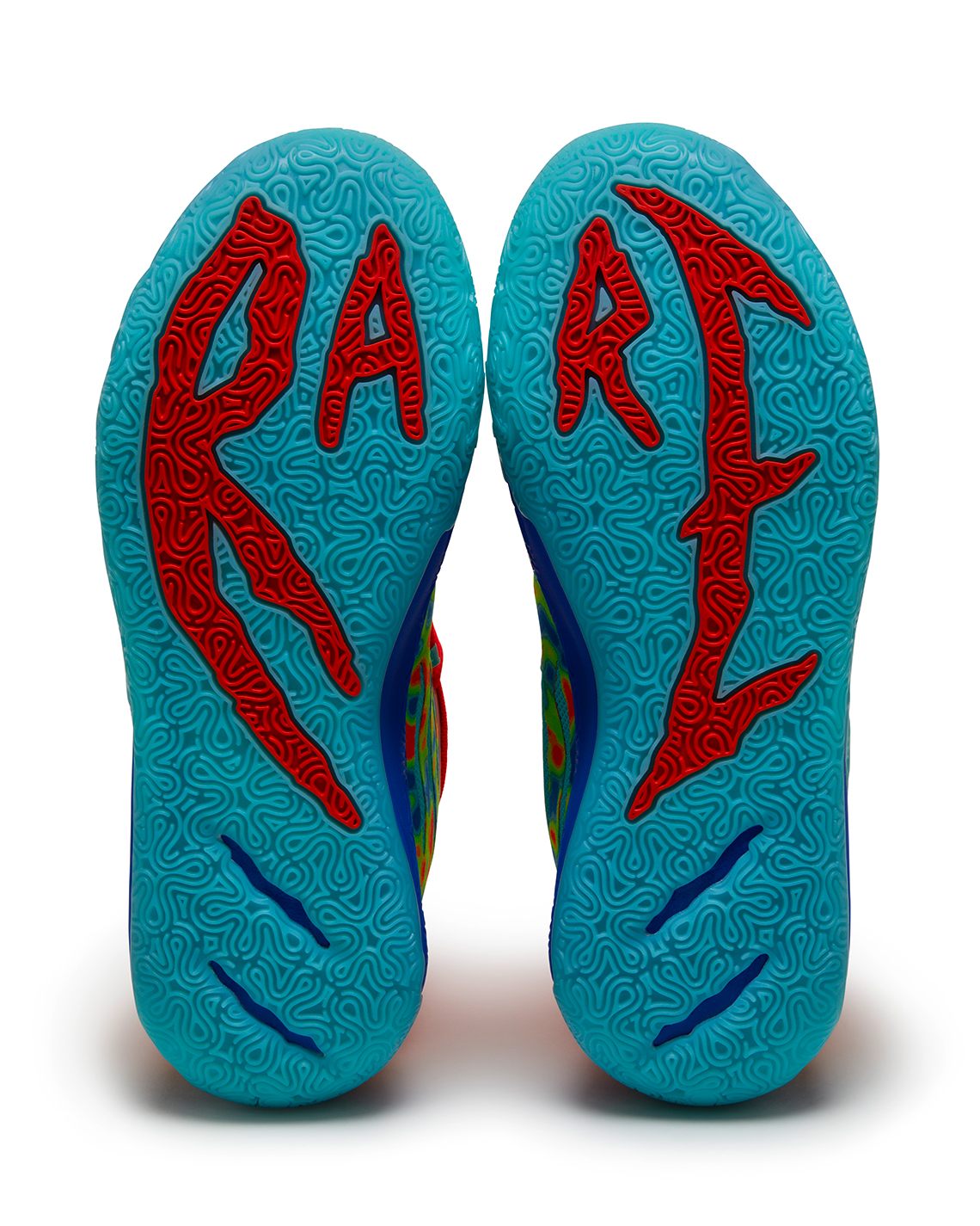 La troisième mouture de sa collaboration avec Puma, dénommée MB.03, si elle présente un shape quasi identique à ses grandes soeurs, sera assez folle dans sa conception et la prise de risque. Entre les matériaux divers, que ce soit du mesh, du tissu et des renforts plastique, et les nouveautés esthétiques, tout est réuni pour plaire à un grand nombre de ballers. Des traces de griffures sont présentes sur l'avant et le côté, laissant apparaitre le système d'aération du pied, le talon est rembourré, et la semelle déborde également sur l'upper comme des traces d'eau à grande vitesse.