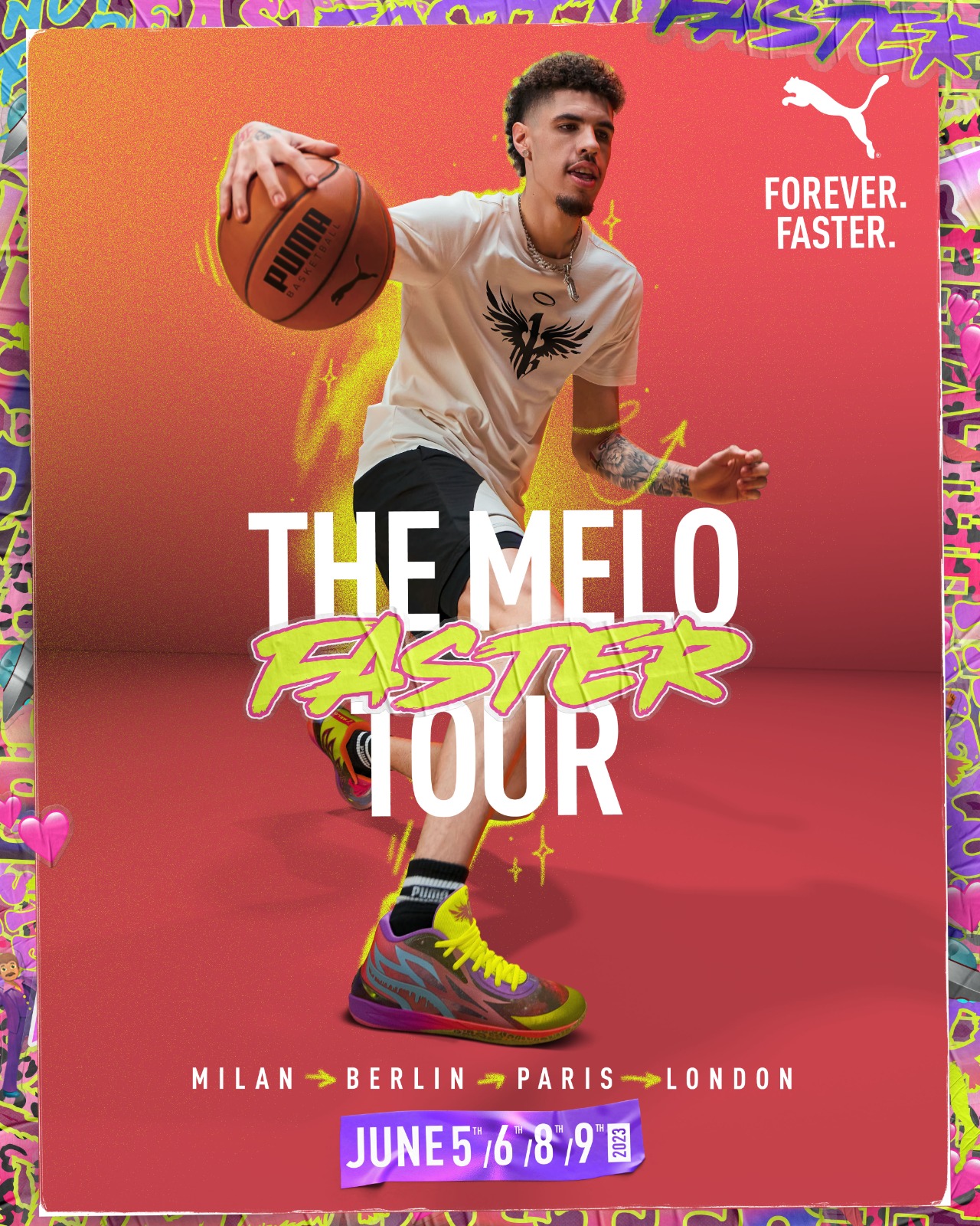 Après avoir vécu une saison compliquée à cause des blessures, LaMelo Ball prépare son retour au premier plan et le redressement des Charlotte Hornets. Le meneur All-Star va d'abord se lancer dans une tournée européenne avec son équipementier Puma à la rencontre de ses fans et de quelques villes emblématiques du Vieux Continent. Paris fait évidemment partie des étapes de son Melo Faster Tour. Le 8 juin prochain, après avoir démarré à Milan (le 5 juin) et Berlin (le 6), le Californien sera dans la capitale française, pour un événement organisé par Puma Hoops.