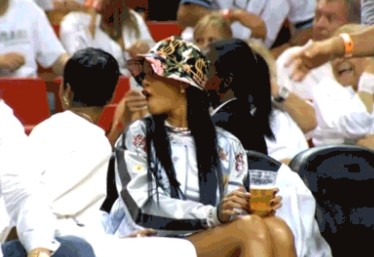 Scène culte la nuit dernière à l'American Airlines Arena lorsque LeBron James a terminé sa course dans les gradins sous les yeux de Rihanna, visiblement impressionnée par la détente de l'ailier de Miami.