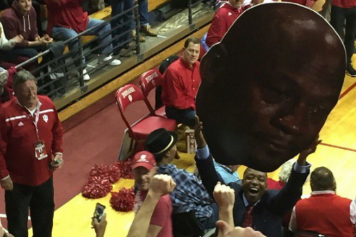 Isiah Thomas a brandi un panneau "Crying Jordan" lors de la victoire des Hoosiers face à UNC mercredi. La hache de guerre est déterrée.