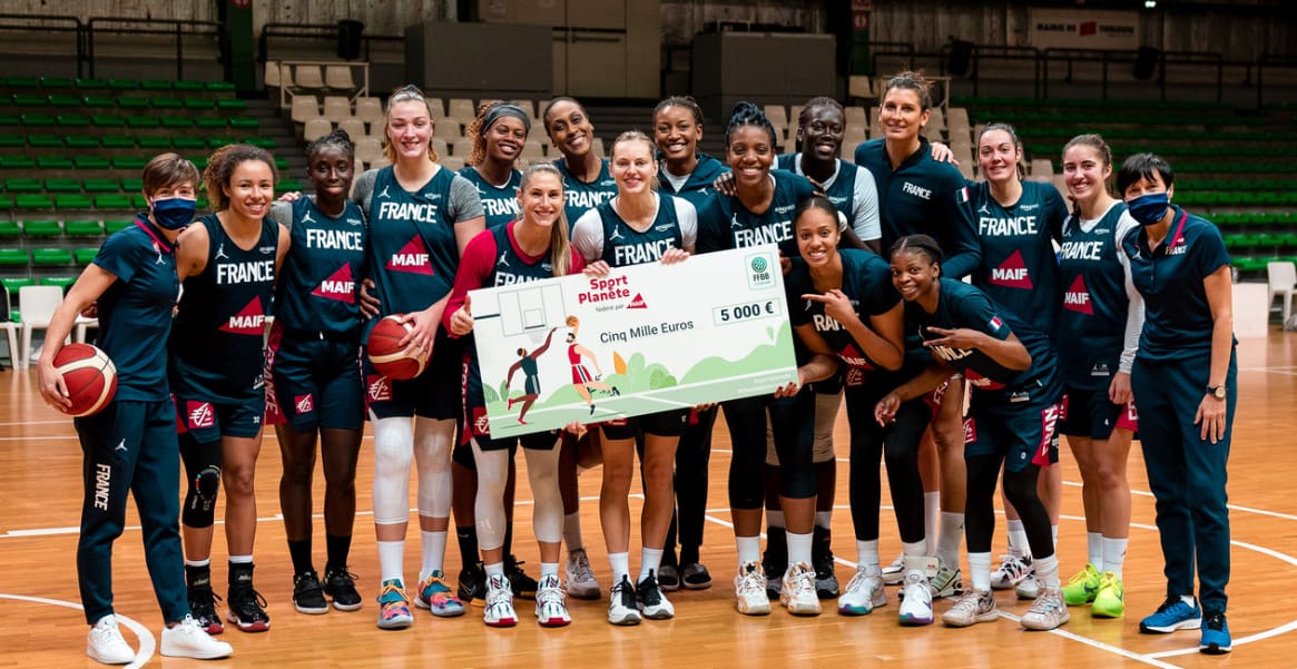 Pour rappel, l'équipe de France féminine participera à l'Eurobasket 2021 et aux Jeux Olympiques de Tokyo. Au Japon, les Bleues retrouveront Team USA, le Japon et le Nigeria dans une poule très relevée.🏀 Cette année, lors des matchs se jouant en France : chaque point marqué par les @FRABasketball sera synonyme d’un montant reversé à un club local labellisé « FFBB Citoyen MAIF ». Les premiers paniers en vidéo pour le challenge de lancement ⏬ #SportPlanète #ChaqueActeCompte pic.twitter.com/WYT120XjNO