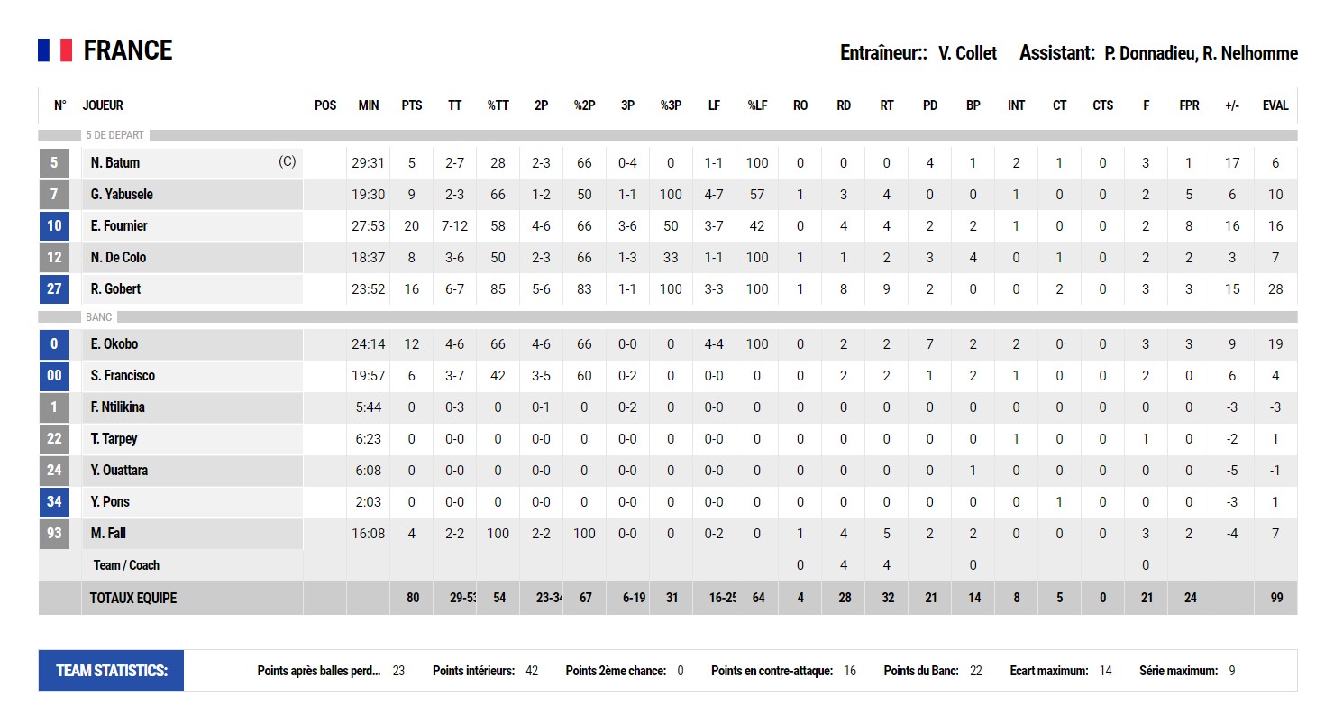 Le boxscore de la France