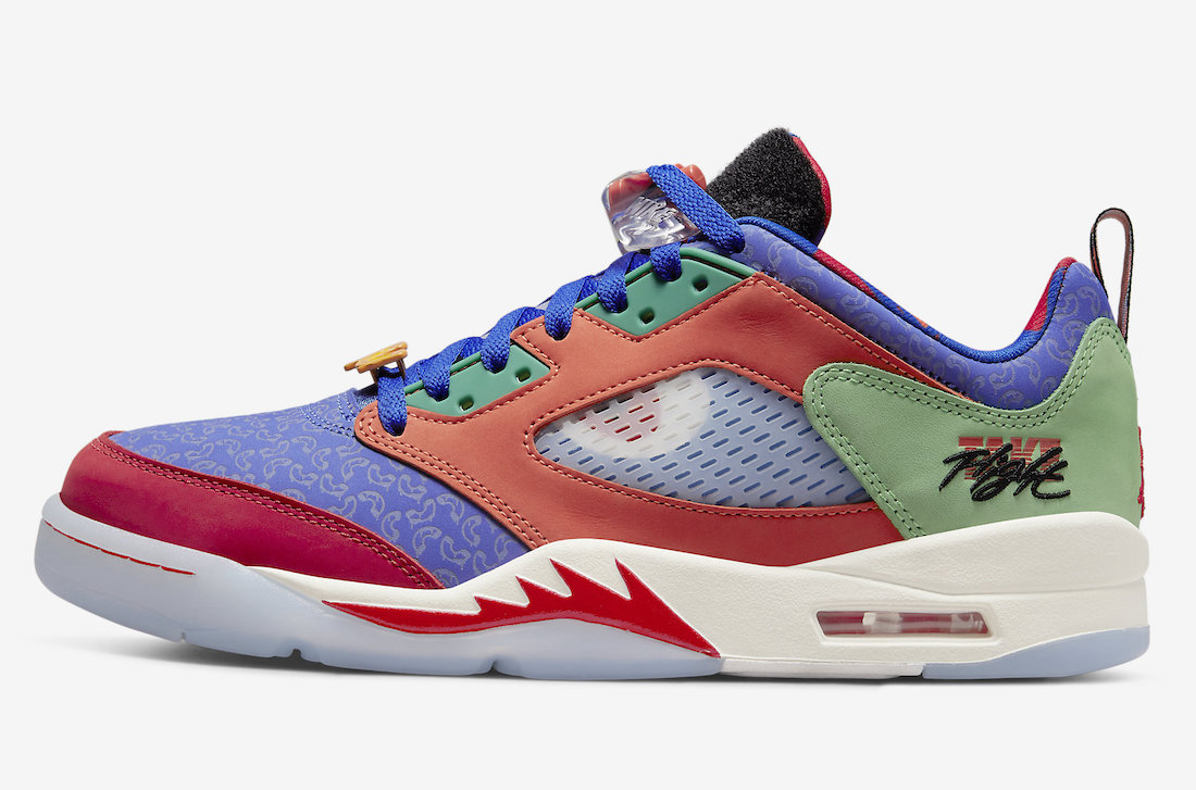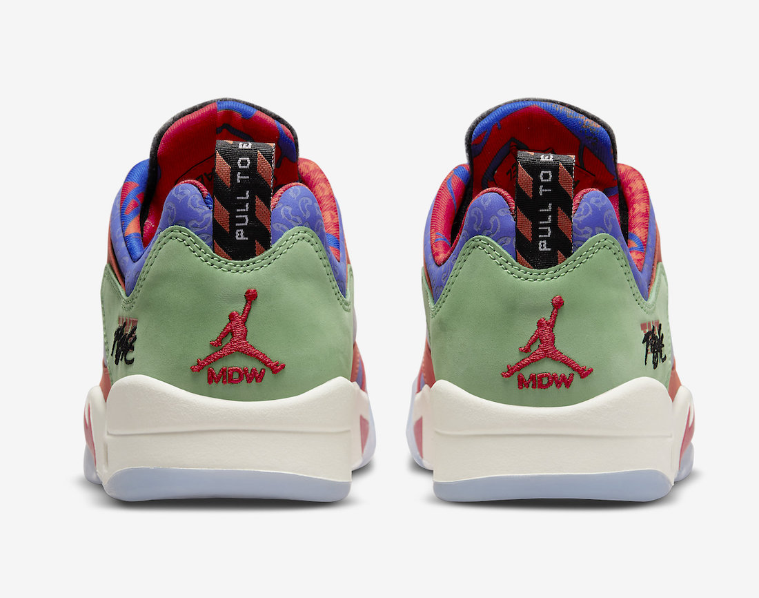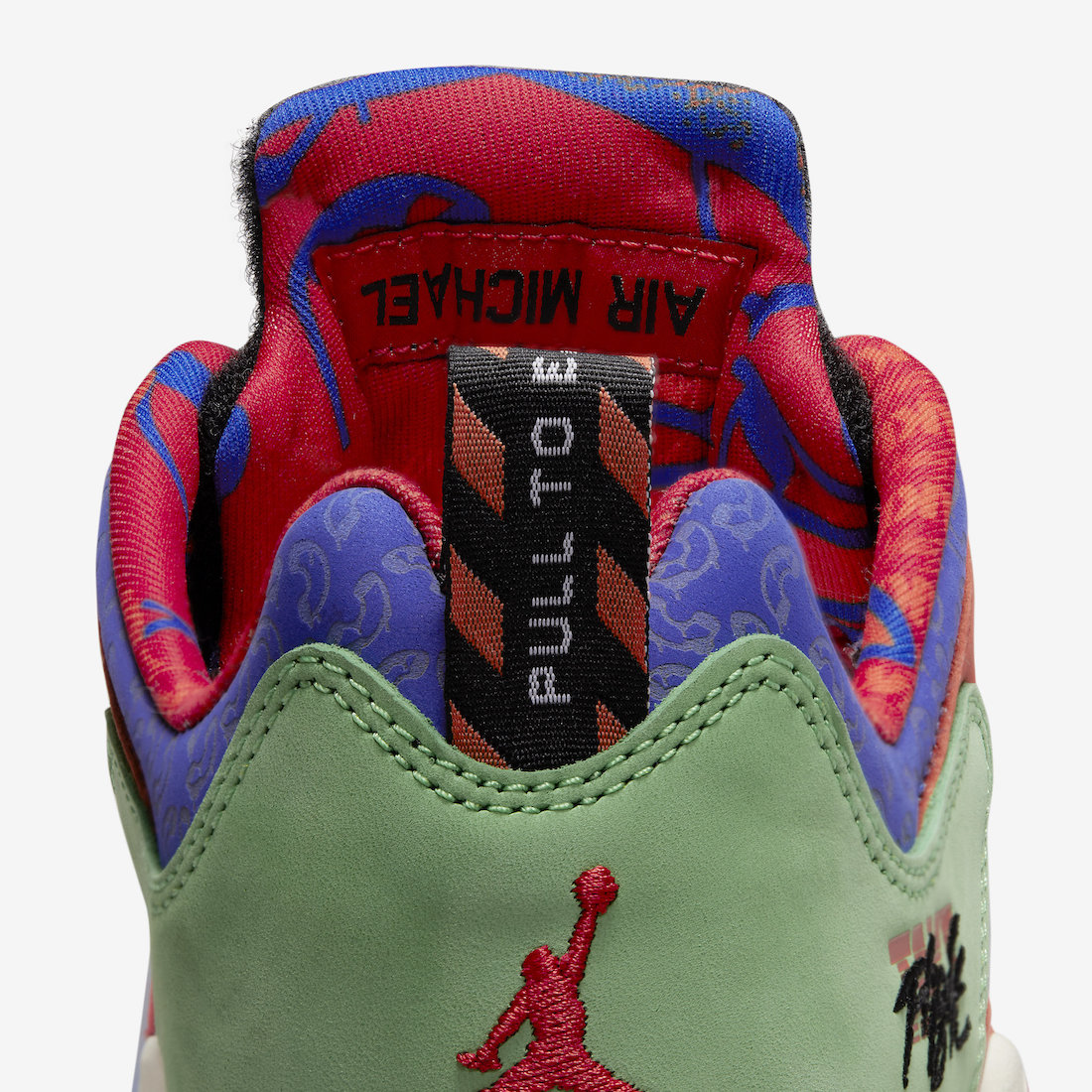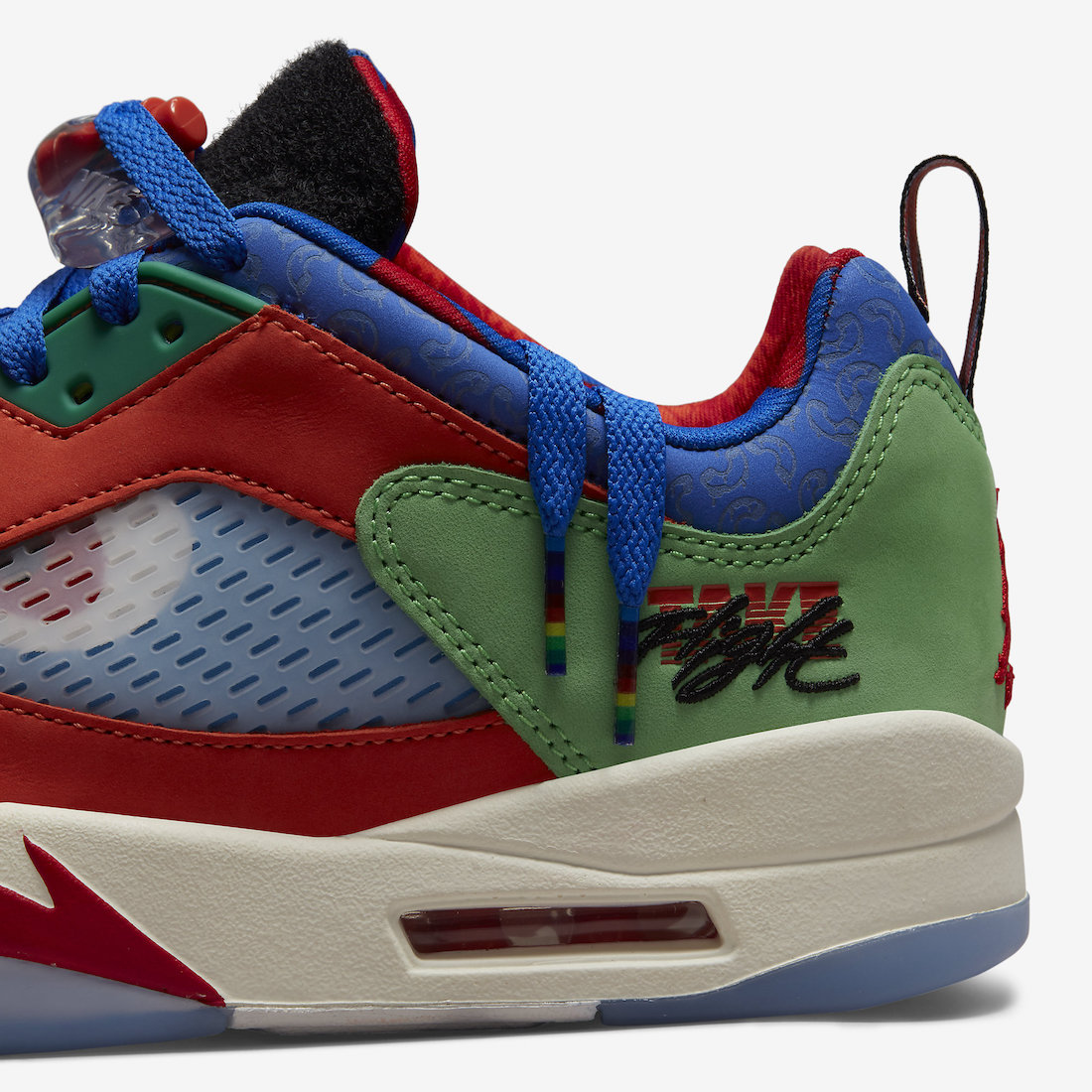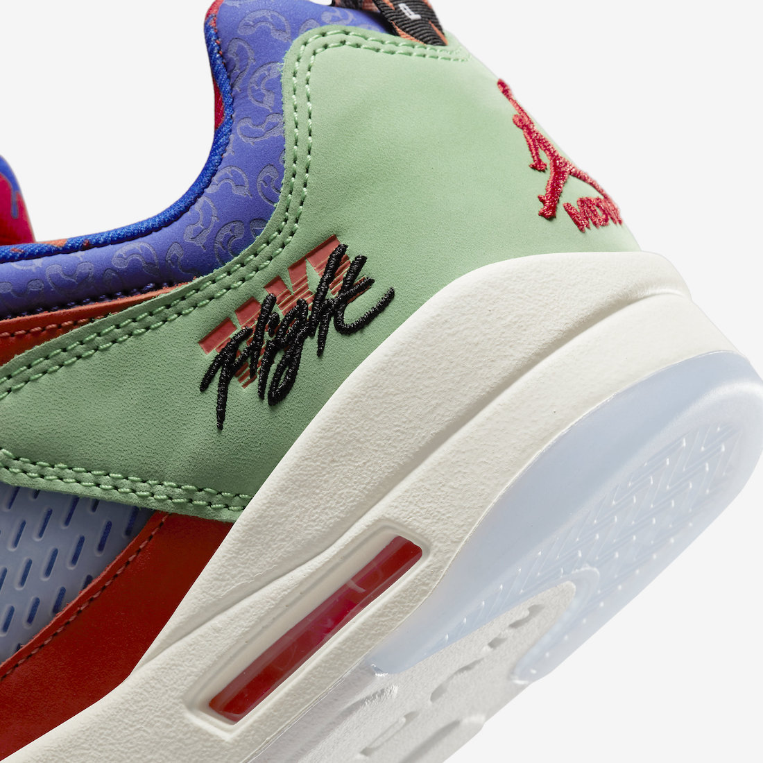 Depuis des années, Jordan Brand propose aux enfants malades de l'hôpital Doernbecher de Portland de dessiner des modèles exclusifs. Pour donner du bonheur et offrir de beaux projets à ces kids, la marque au Jumpman leur laisse carte blanche, et le rendu est souvent plein de poésie et de couleurs. Cette nouvelle Air Jordan 5 en version low a été mise au point par le jeune Michael Wilson, qui souffre de la maladie de Krabbe.
