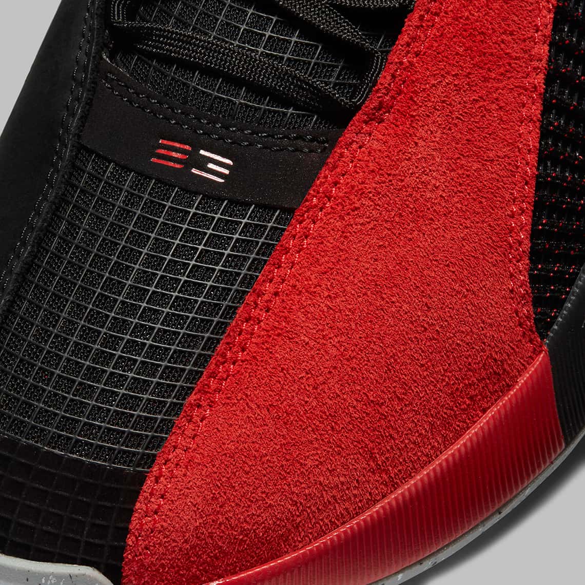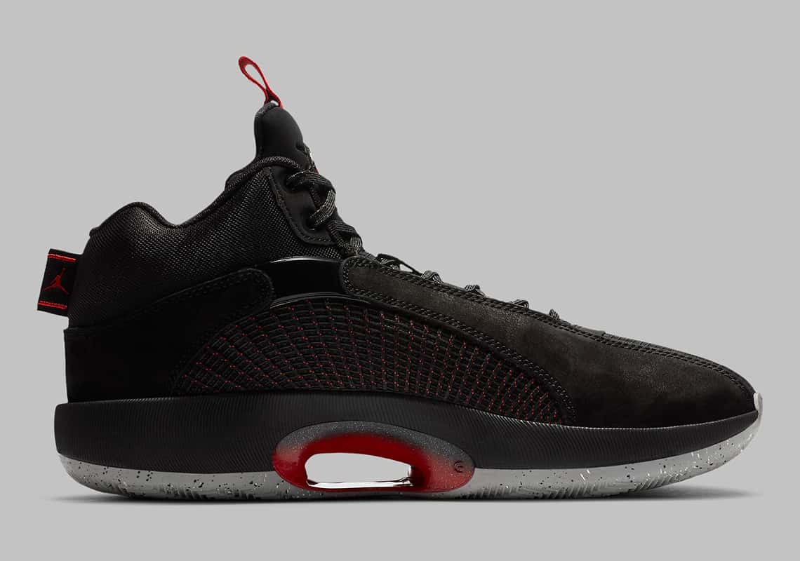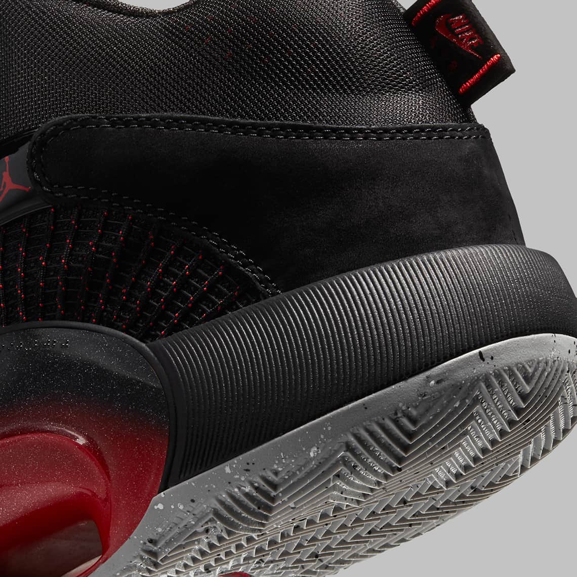 Comme à son habitude depuis le numéro XXX1, la nouvelle née de la glorieuse lignée rend hommage à ses mythiques ancêtres, et c'est ici la Jordan 5 qui apparait notamment au niveau du col et la languette (sans oublier la petite étiquette Nike Air sur l'arrière qui fait toujours plaisir). Le Jumpman apparait en rouge sur le haut de ladite languette droite, faisant face à un logo japanisant de l'autre côté.