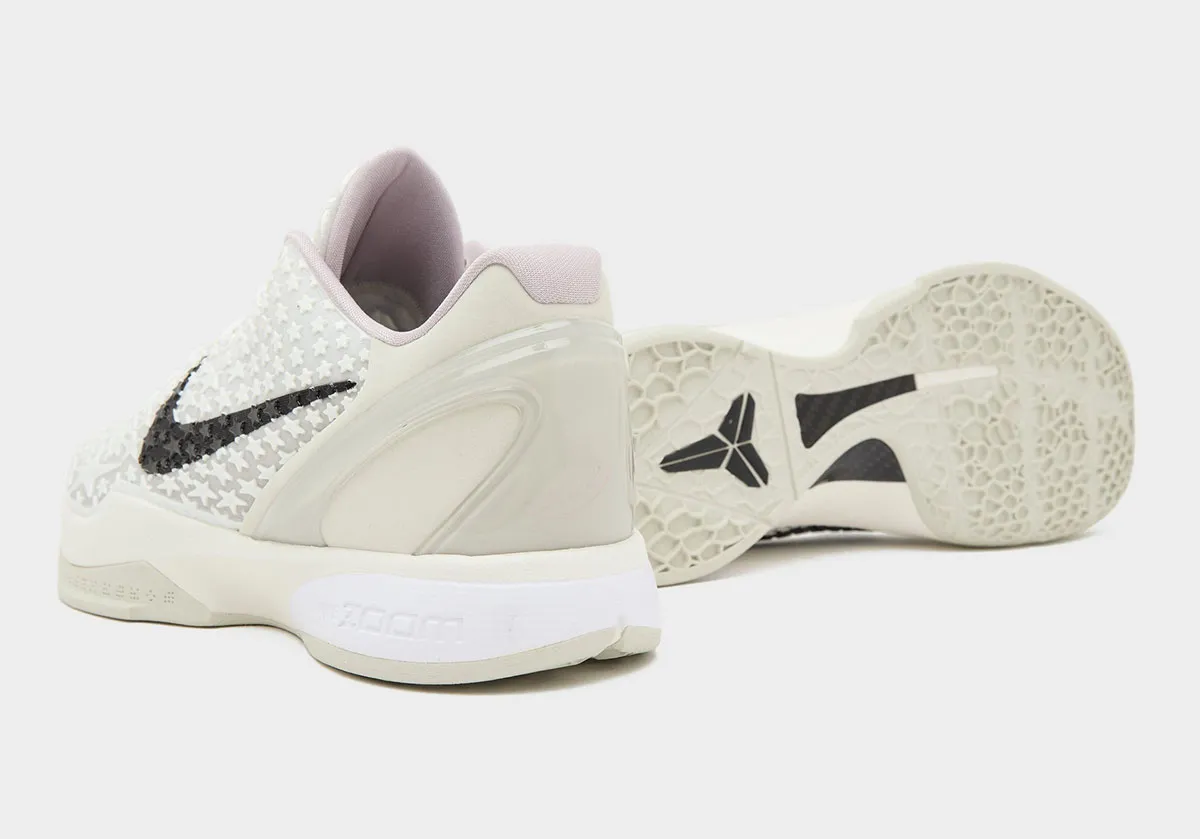 Cerise sur le couteux gâteau, une superbe Kobe 6 Protro va également se mêler à la fête. La base est blanche et parsemée d'étoiles remplaçant le traditionnel motif snakeskin, complétée par un Swoosh noir et un col rose pale.