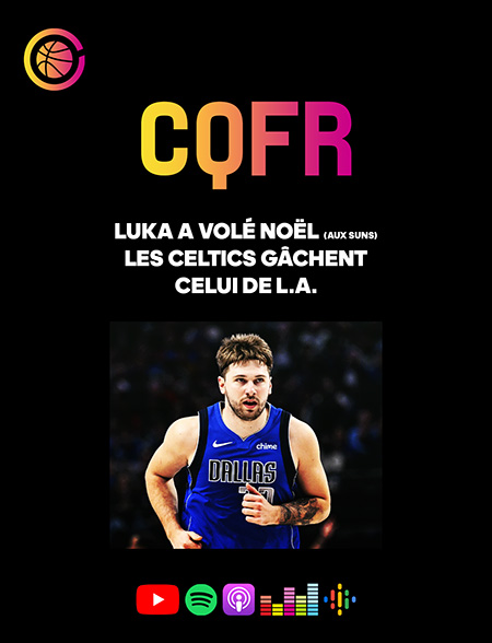 Dans le CQFR du jour, Théophile Haumesser et Shaï Mamou reviennent sur les matches de Noël, avec notamment la performance époustouflante de Luka Doncic face aux Phoenix Suns.