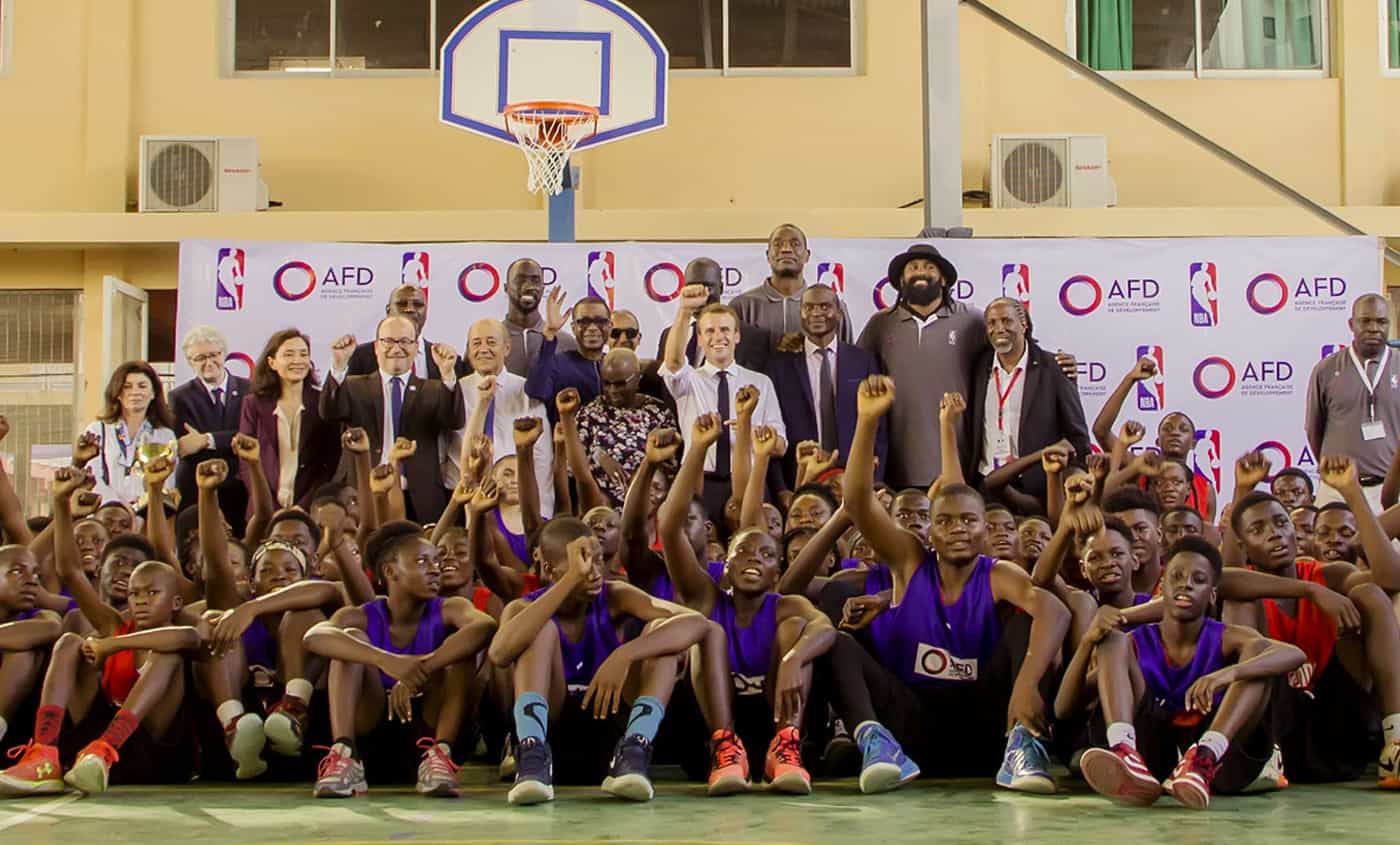 "On s'est dit « Commençons avec la NBA », avec ensuite l'intention d'aller voir la FIFA ou d'autres ligues et fédérations."Et puis, il y a une histoire forte avec la France et l'Afrique, qui représentent les contingents étrangers les plus importants en NBA. Sans compter les légendes comme Mutombo, Olajuwon et les autres joueurs africains qui ont laissé une trace forte dans la ligue. Si on y arrive bien, il y a des histoires à raconter. Entre Nicolas Batum, dont le papa était Camerounais ; Boris Diaw dont le père est Sénégalais ; Evan Fournier dont la maman est Algérienne ; Ian Mahinmi dont les parents sont Béninois, on devrait arriver à mobiliser, je l'espère, ces grands joueurs pour qu'ils s'engagent dans le développement de l'Afrique et dans le lien entre la France et l'Afrique. On s'est dit « Commençons avec la NBA », avec ensuite bien sûr l'intention d'aller voir la FIFA ou d'autres ligues et fédérations. [caption id="attachment_441271" align="alignnone" width="1400"] Emmanuel Macron lors de l'annonce du partenariat entre la NBA et l'AFD[/caption] BasketSession : En quoi consiste précisément ce partenariat ? Rémy Rioux : Nous avons signé une convention de partenariat dans laquelle nous avons mis douze millions de dollars d'investissement. De son côté, la NBA qui est quand même une institution lucrative a accepté de mobiliser six millions de dollars de dons pour financer des programmes et donc nous, l'AFD, on va matcher ça et mettre six millions aussi. On aura donc une première capacité financière de douze millions de dollars ce qui n'est pas négligeable et l'idée, c'est de faire trois choses : financer des infrastructures (créer des terrains de basket là où c'est utile), financer du soft, autrement dit mettre en place des programmes éducatifs avec des ONG locales en profitant de la présence des terrains ou en travaillant sur le contenu éducatif des NBA Jr Leagues qui sont en train de se mettre en place. La question, c'est de savoir comment faire en sorte que ces espaces dans lesquels on réunit des jeunes ne servent pas qu'à faire du basket, mais qu'on puisse aussi leur parler éducation, nutrition, prévention du SIDA. Et puis, le troisième axe, c'est les anciens joueurs. Souvent, ils veulent s'engager pour leur pays ou même leur rendre une partie de leur richesse. Vous savez par exemple que Dikembe Mutombo a créé une clinique à Kinshasa dans laquelle il a mis quarante millions de dollars de sa fortune personnelle. Nous, on passe notre vie à financer des programmes d'éducation, de développement urbain ou à investir dans des entreprises en Afrique. Il y a évidemment une synergie et des possibilités de mettre du basket dans nos programmes de développement. Ces douze millions de dollars vont nous aider dans ce sens.