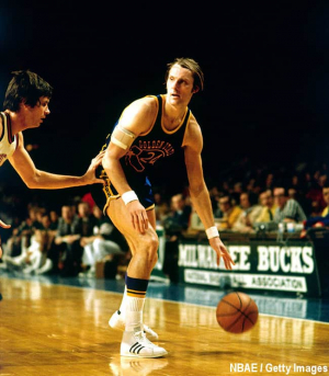 Excité par l’idée d’évoluer dans le gigantesque marché new-yorkais, il y joue deux saisons, toujours aussi brillantes, et ponctue son passage dans cette ligue mineure d’une finale perdue contre les Pacers. Une anecdote tirée de l’incontournable Loose Balls de Terry Pluto témoigne de son statut en ABA :