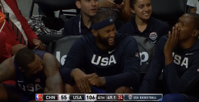 Le airball de DeAndre Jordan sur un lancer-franc a provoqué un fou rire chez les joueurs de Team USA assis sur le banc de touche.