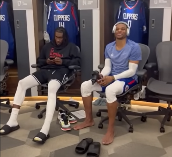 "Tout le monde a pété un câble avec ça. Ce qui s'est passé, c'est que James était déjà venu dans le vestiaire avant, on l'avait déjà accueilli et on avait déjà discuté. Là, c'était juste la première fois qu'ils se voyaient avec Russ. Mais pas la première fois que nous on le voyait. Je le connais depuis des années et on s'entend bien, je suis très content de jouer avec lui".