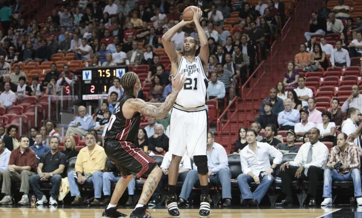 Tim Duncan recherchait fréquemment la position qui lui permettrait de placer un bank shot."Une fois qu'il reçoit la balle dans la raquette et qu'il peut se mettre face à toi, tu es à sa merci", déplorait Blake Griffin après un match entre les Clippers et les Spurs.Que ce soit en face up, où il aimait particulièrement lancer un petit jab pour feinter son défenseur, ou dos au panier en turnaround, la séquence était généralement létale.