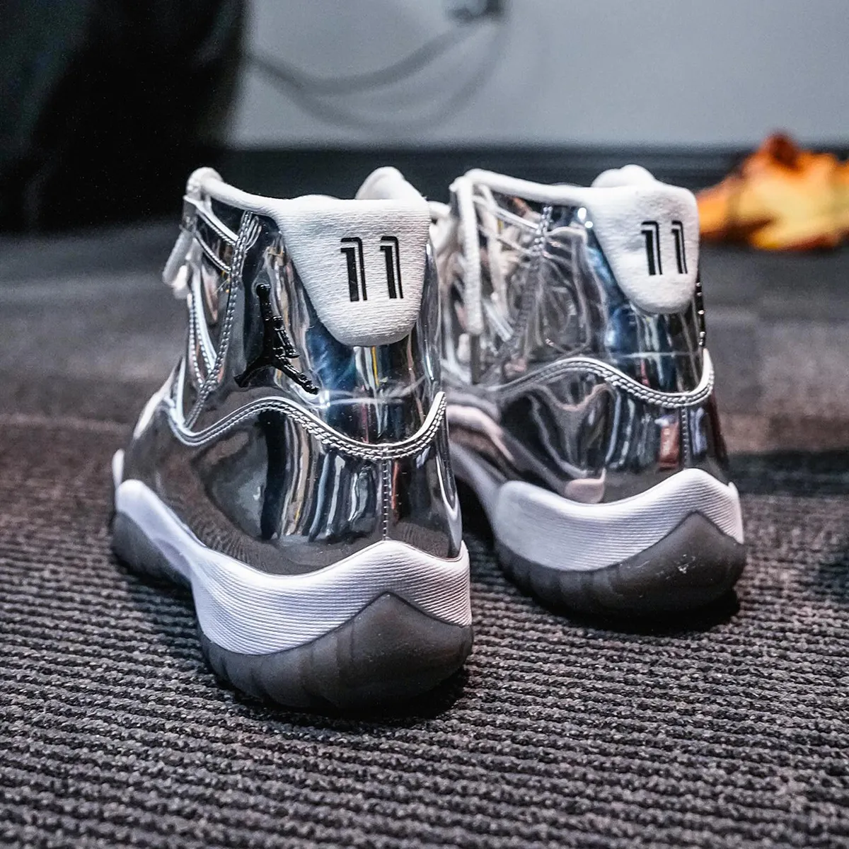 En en plus de son énooooooorme bijou, Brown été gâté avec une paire de Air Jordan 11 exclusive en mode Silver Surfer. Entièrement recouverte de cuir argentée, la mythique silhouette est frappée du numéro 11 sur l'arrière et d'un Jumpman en relief.