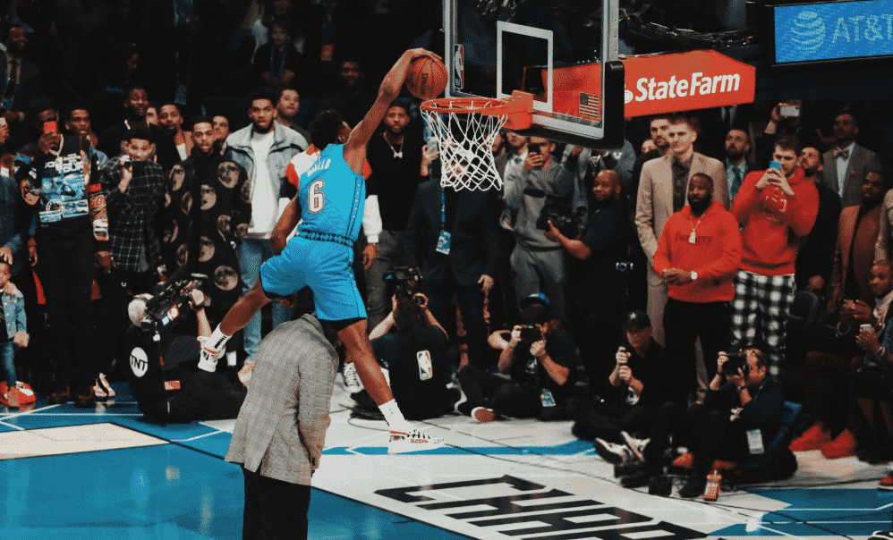 Au niveau de l'inventivité, John Collins a tenté une mise en scène originale pour rendre hommage à l'aviation en Caroline du Nord, mais le fait qu'il ait percuté et fracassé l'aile de l'engin par-dessus lequel il a sauté lui a fait perdre des points.Le dunk qui a sans doute fait gagner Hamidou Diallo. pic.twitter.com/ikh6A5mSKh