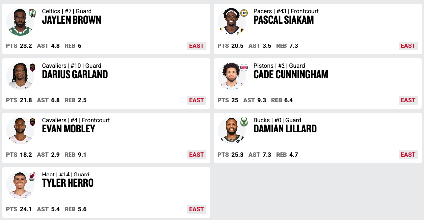 Beaucoup plus logique, la présence du Celtic Jaylen Bronw, MVP des Finals 2024. Même chose pour Darius Garland et Evan Mobley du fait du parcours incroyable de Cleveland depuis le début de la saison. C'est donc le pivot Jarrett Allen qui est passé à la trape. Sans trop de surprise là encore.