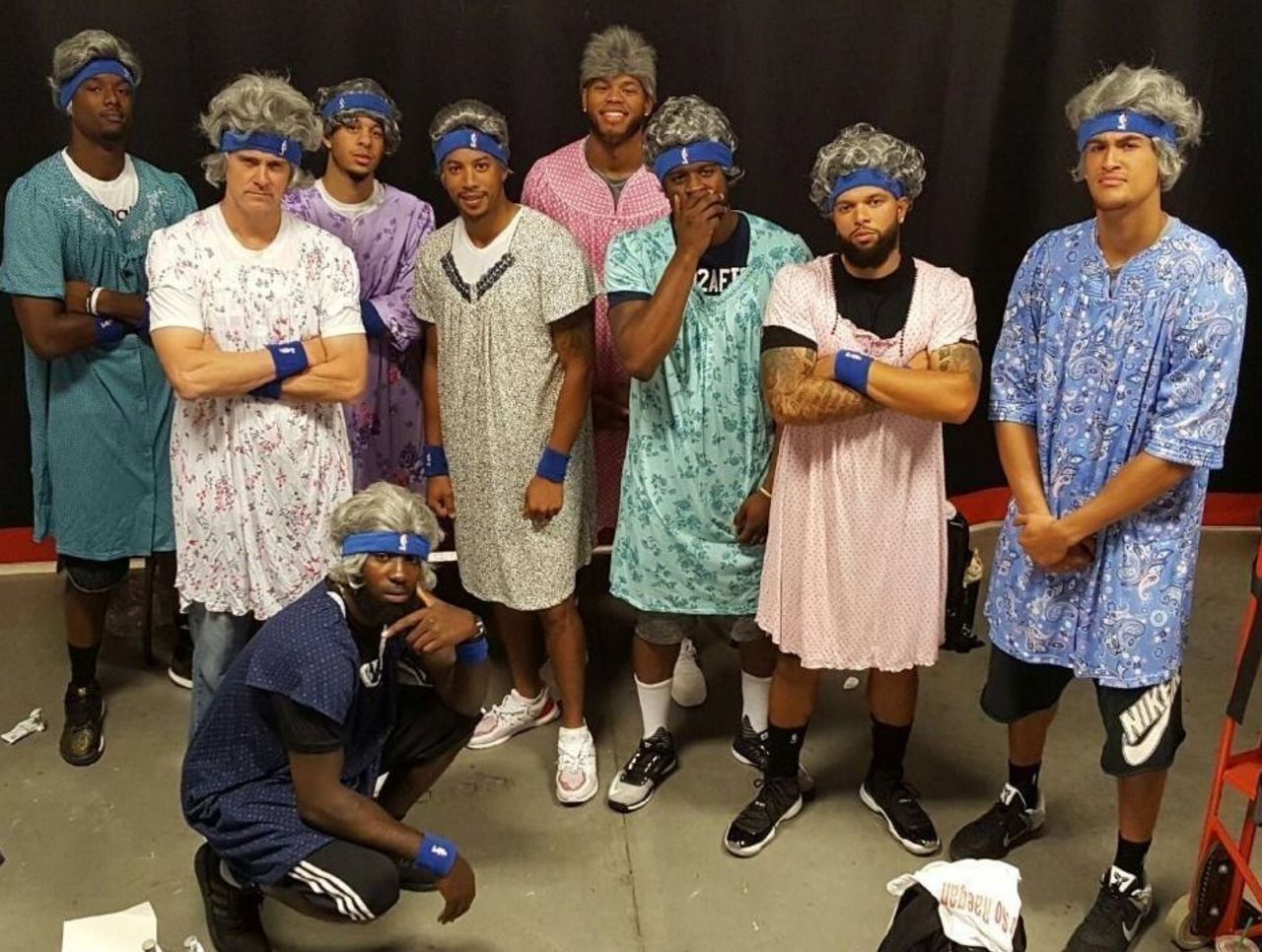 De sortie pour un match de charité de dodgeball, les joueurs des Dallas Mavericks sont apparus vêtus en grand-mères. Beau geste.