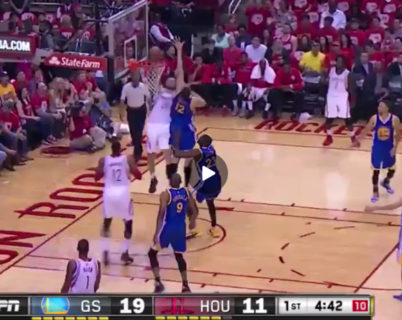Dès le début du premier quart-temps entre les Houston Rockets et les Golden State Warriors, Donatas Motiejunas a marqué les esprits avec un poster sur Andrew Bogut.
