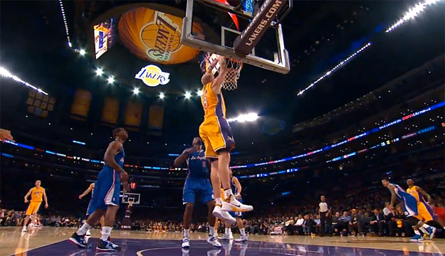 Lorsqu'il ne prend pas des dunks sur la tête, Timofei Mozgov est capable de très bien jouer au basket. La preuve avec sa jolie perf contre les Lakers.