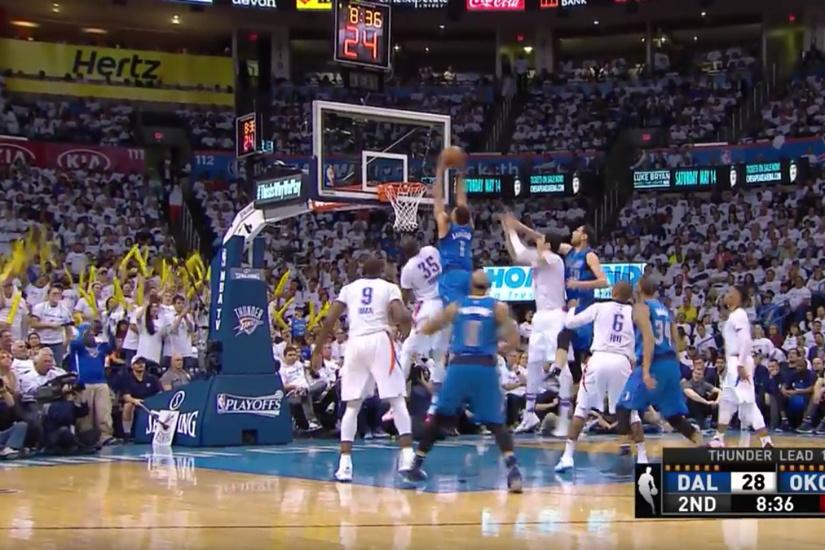 La série entre les Mavs et le Thunder a été marquée par de nombreux coups. Là, c'est Justin Anderson qui a joué des coudes sur Russell Westbrook.