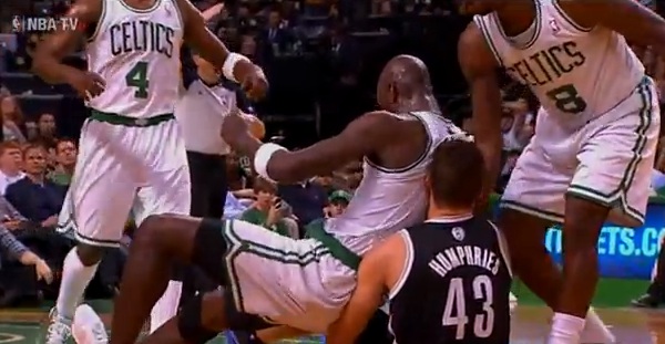 Kris Humphries a bousillé un panneau. Une bonne stratégie pour aller à la douche plus rapidement que prévu.