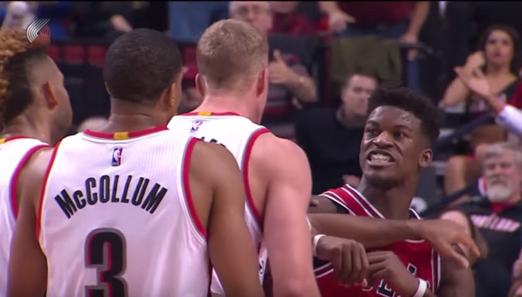 Jimmy Butler a écopé d'une faute technique et donc de 2500 dollars d'amende après s'être embrouillé avec le pivot des Blazers Mason Plumlee.