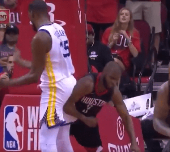 Jamais le dernier pour laisser traîner les coudes, la main ou les pieds, Chris Paul a encore une fois fait preuve de filouterie en frappant Kevin Durant dans le bas...