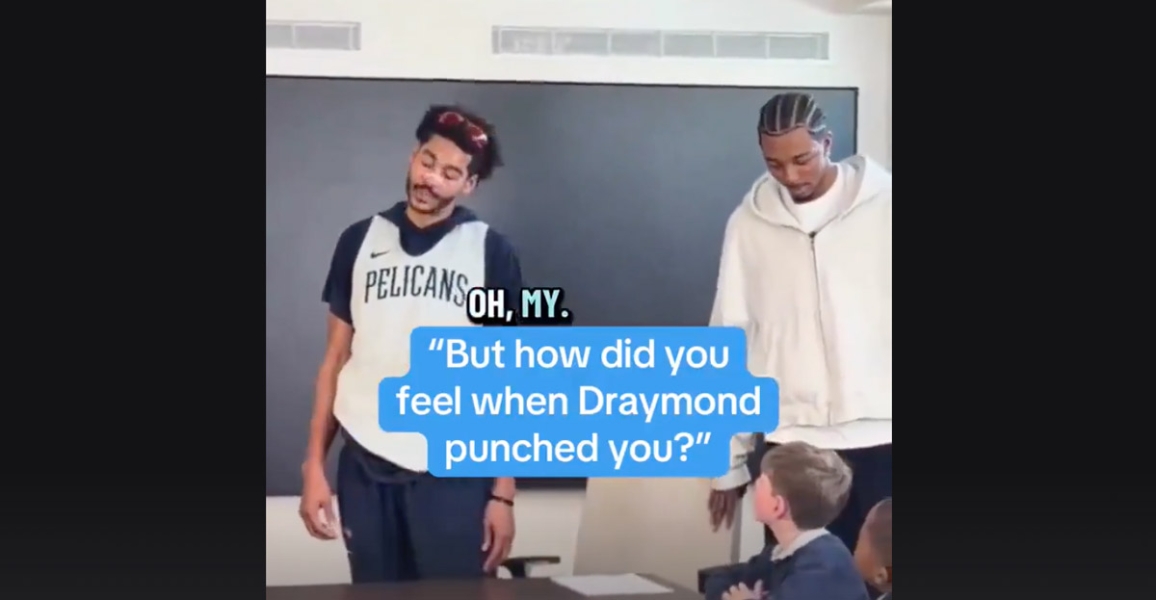 Les Pelicans profitaient d’un jour de repos pour laisser leurs jeunes fans approcher les joueurs et poser toutes les questions qu’ils voulaient. Jusqu’à ce que l’un d’eux, sans aucune arrière-pensée journalistique, demande à Jordan Poole : « Comment tu t’es senti quand Draymond t’a frappé ? » — une référence à l’inoubliable épisode de 2022 où Draymond Green a asséné un coup sur le visage de Poole alors que tous deux étaient encore chez les Warriors.