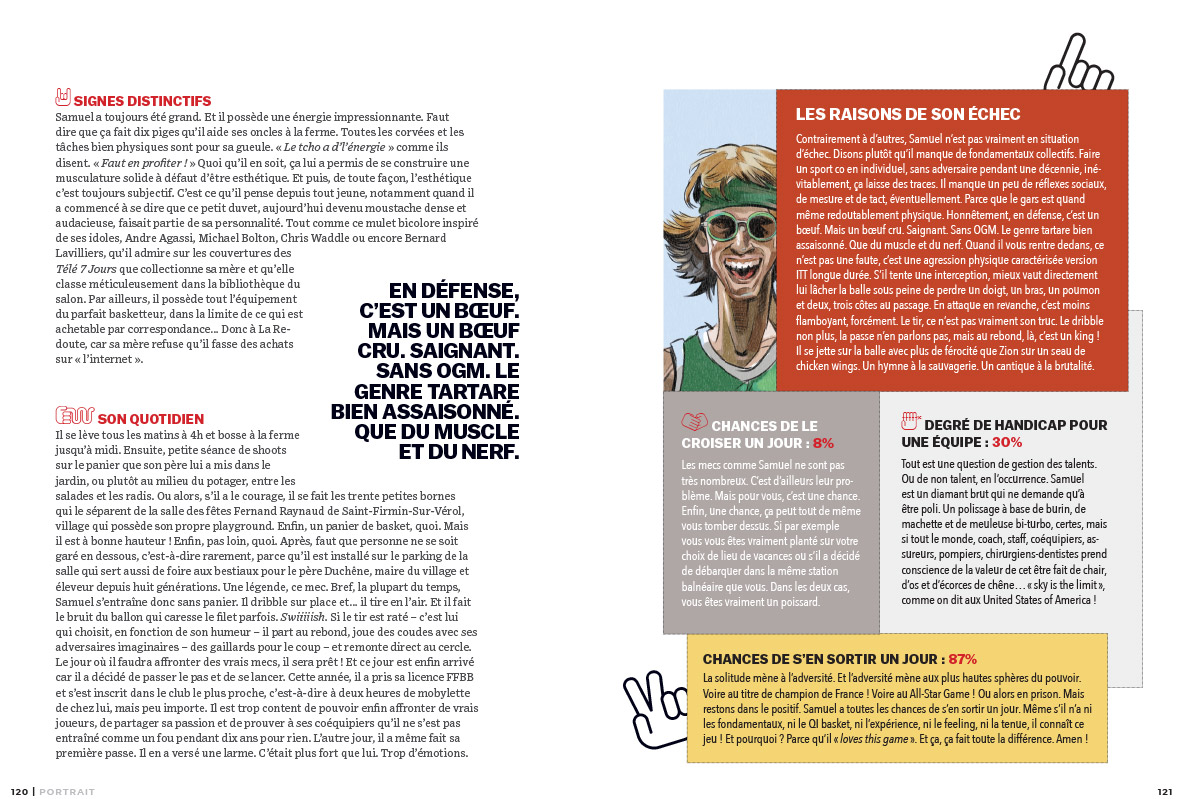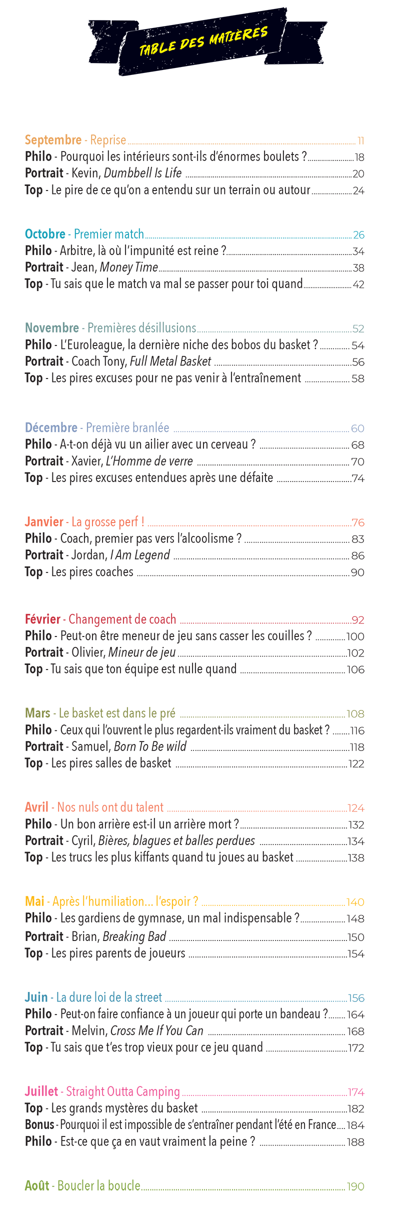 Quand Xavier s’est pointé avec son couteau recouvert de merguez, on s’est dit que c’était peut-être pas nécessaire. Et puis, taillader les paumes d’un basketteur, c’est peut-être con. Surtout, heureusement qu’Elodie est venue nous arrêter avant que l’on parte trop en vrille. Mais bref, tout le monde avait l’air motivé pour se maintenir en forme pendant l’été, histoire de commencer bien fort la saison. Les gens normaux prennent leurs bonnes résolutions pendant les fêtes de décembre, après avoir déboîté les petits fours au saumon à Noël. Ben, nous, au basket, on les prend en juin, après avoir perdu des matches contre des mecs sans style et sans saveur qui jouent avec des Asics aux pieds. C’est là que tu te remets en question et que tu te promets de ne plus jamais vivre de tels traumatismes. Tout le monde sait ce qu’il a à faire. On l’a même répété dans le groupe WhatsApp. Même Tony, notre coach, est impliqué ! C’est vrai que ça a l’air logique qu’il soit investi dans son équipe, hein. Mais entre son gosse qui passe plus de temps à taper des roues en scooter qu’à aller à l’école et son divorce en cours avec sa femme, déjà recasée depuis un moment avec le gérant du Picard d’à côté, il a parfois tendance à s’éparpiller. Mais là, il jure avoir déniché trois anciens joueurs de Nationale 3 bien forts. Apparemment, les mecs sont bouillants pour venir. Ils kiffent le projet. Y’a aussi ce grand, croisé au forum des associations une semaine avant la reprise. Un Tchèque. Enfin non, un Finlandais. Bref, ça n’a pas d’importance et il n’a pas voulu nous dire d’où il venait, mais il nous a assuré qu’il avait joué en espoirs dans son pays il y a quinze, vingt (trente ?) ans. Et il est super intéressé par l’idée de monter avec nous. Ça sent bon, ça ! Cette année, ça se voit, c’est la bonne !